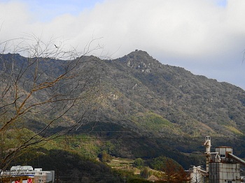 | 14:25 下山後写す。柳井港駅近くから見た琴石山。 |