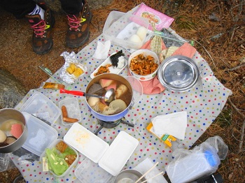 | 12:43 夕陽岳頂上でランチ。 |