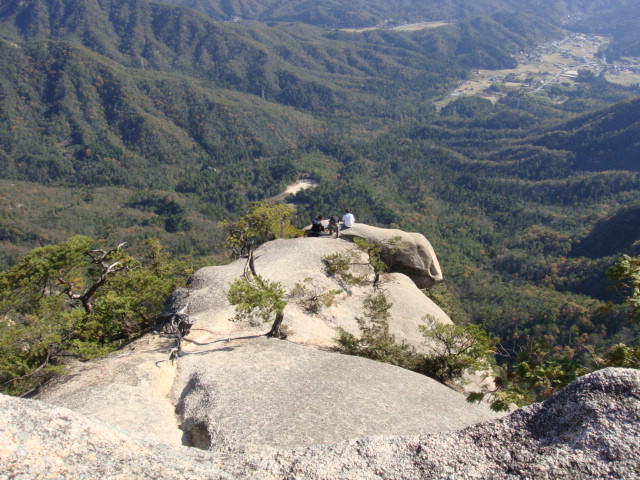 夕陽岳先端から見上げる。降りてはみたが、ちょっと怖かった。この後、上に立ってる女性が降りてくる! |