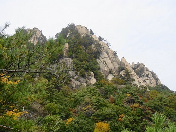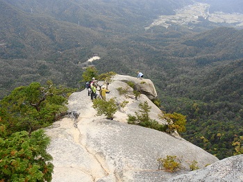| 11:22 夕陽岳先端の岩場から見上げる。 |