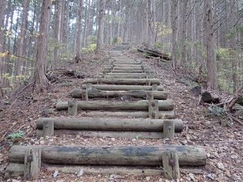 | 12:19尾根道にも木段。 |