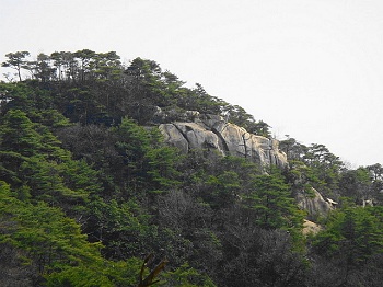 | 15:14 お団子岩から宮島を望むが、霞んでてイマイチ。下山ルートの間違いに気づき尾根道まで戻る。 |