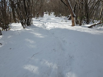 ランチは 煮込みラーメン。2時間程滞在して 西大峰山へ向かう。途中、尾根道で熊棚を観察。