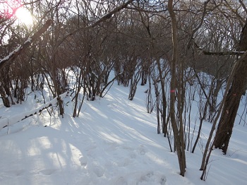 廿日市市玖島の登山口へ10:00着。頂上まで約2時間、積雪は30cm位かな。天候も良く 最高の眺望です。
