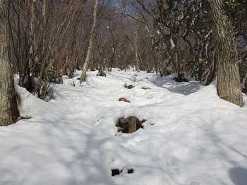 14:08 尾根道で熊棚を発見。