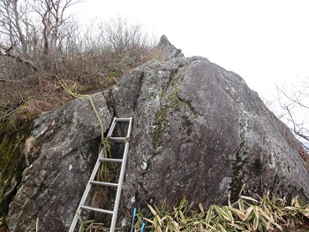 | 登山口に着くなり曇り始めました。頂上でランチの頃には、霰混じりの雨が降りしきって凍えます。 |