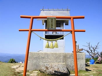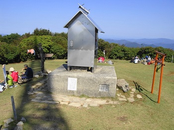 | 14:50 旗の先に白木山の頂上。ここまで車で入れるみたい。3台駐車してた。 |