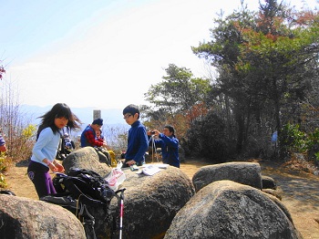 | 桃の節句に武田山。天気も良いし、最高だね。でも遠くは霞んでる、PM2.5かな。ここは、杉花粉飛散の真只中。 |