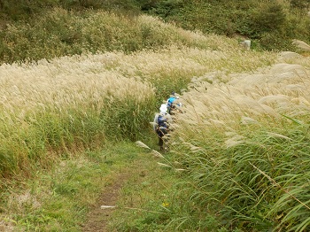 ススキの中を歩きます。 |