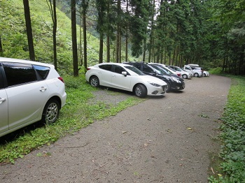 9:46 登山口駐車場、満車状態。