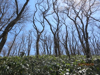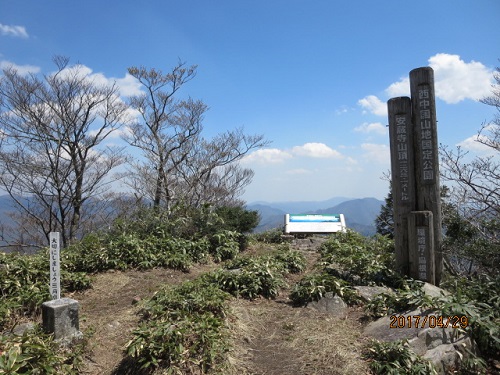 島根県日原町の安蔵寺山へ出掛けたはいいが、渋滞と通行止の迂回で登山口まで3時間も掛かってしまった。 トンネル傍の駐車スペースは、貸し切りだ。ミズナラとクマザサの登山道を山頂へ…山頂も貸し切りと思いきや ランチ中に3人到着。