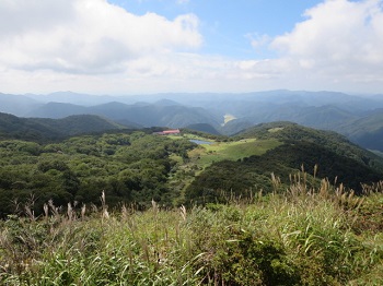 12:10 山頂から見る吾妻山ロッジ。