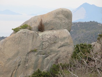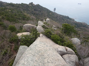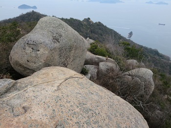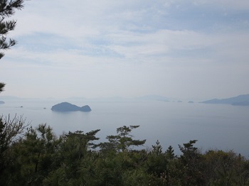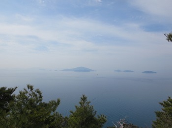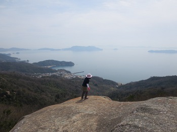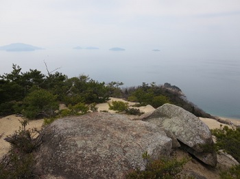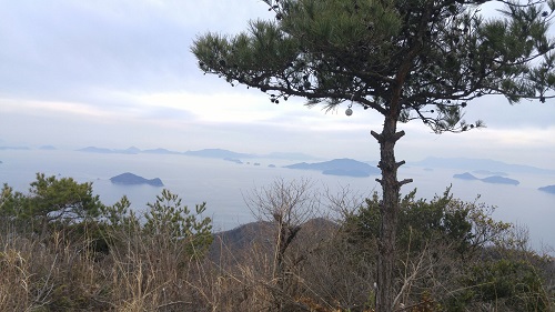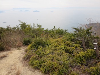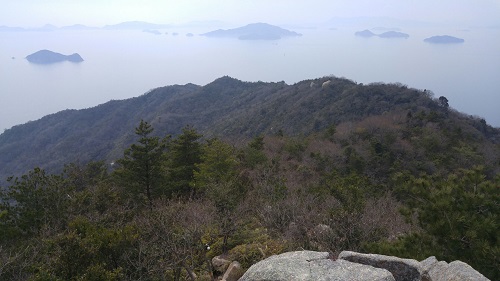 381mピークまでは、後ろに瀬戸内海の島々を背負っての登山だ。