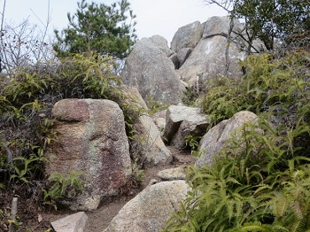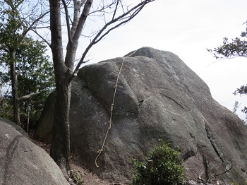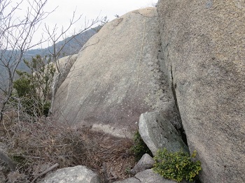 | 15:33 先端の大岩を岩場ルート分岐より眺める。 |