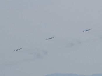 | 14:05 自衛隊の訓練飛行かな。何度も旋回してる。 |