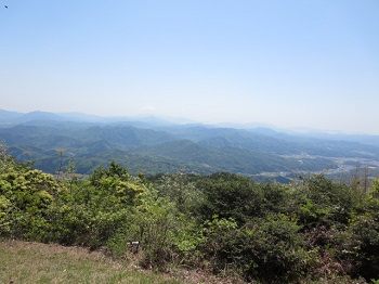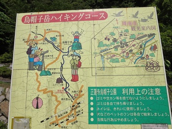 熊毛ICで下りて、岩徳線の高水駅の北東、正連寺烏帽子公園の駐車場に到着。登山道は、木陰が多くて有り難いが、眺望はゼロ。頂上手前の大将軍が、唯一のビユーポイントだ。烏帽子岳山頂は、展望無しのため、大将軍へ戻ってランチ。