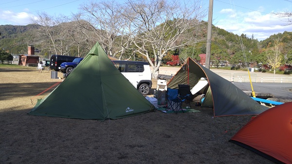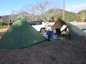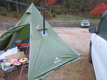 岩国市の二鹿野外活動センター。ここは2回目となります。結構冷えるので薪ストーブが有難い。
