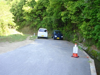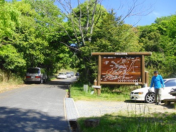 | 9:13 登山口。車の回転場につき駐車禁止。軽が2台、アスファルト上で無ければ良いってか・・・? |