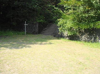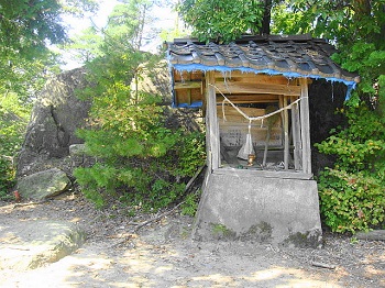 11:28 祠。奥の岩の上がランチに最適。ただし3人までかな。 |