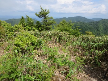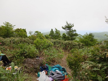 12:25 山頂分岐の広場。道に迷って30分ほど引き返し標識を発見。1時間ほど無駄にした。 |