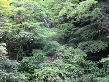| 大竹市の弥栄湖の東に位置する黒滝山岩国市錦町の木谷峡から平家ヶ岳へ。楽をしようと車で進入できる限界の平家屋敷跡に駐車。木苺を摘まみながらの道中、どうやら迷ったようだ。頂上への分岐を見落とした。30分ほど引き返して無事発見。 |