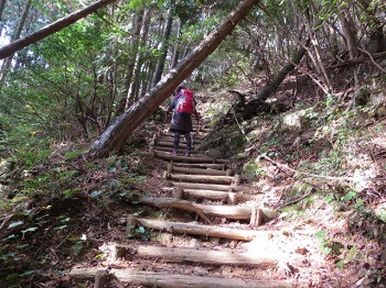 11:39 主稜線鞍部。ベンチでしばし休息。