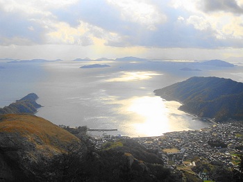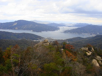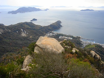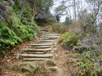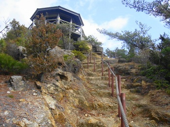 | 呉市から更に南、音戸大橋を渡り倉橋島へ。島南の桂が浜駐車場へ車を停め、朝市をちょっと素見して登山開始。陽だまり登山に適した山です。日陰がなく、夏の盛りは避けたほうがいいかな。 |