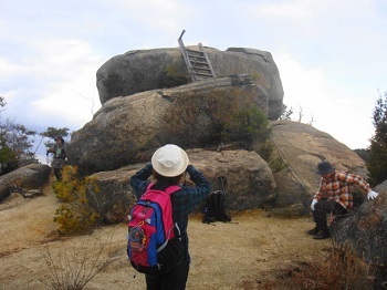 | 12:37 頂上の三段重ねた岩。岩上からの眺めは最高です。 |