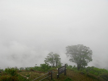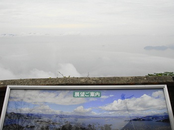 | 12:28 パノラマ展望台から下方を見る。霧で全く見えない。 |