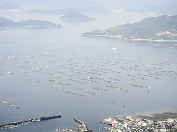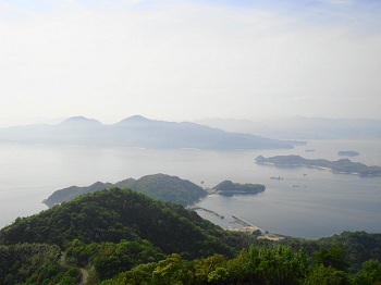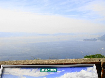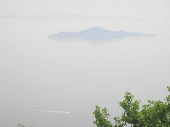 | 14:43 東屋からの展望。阿多田島、霧で先が見えん。 |