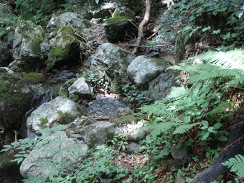 | 沢に下りて、ちょっと休憩。水が冷たくていい気持ち。 |