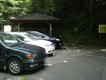 | 犬戻し遊歩道入口の駐車場。4〜5台駐車できます。 |