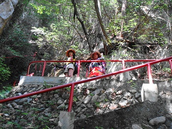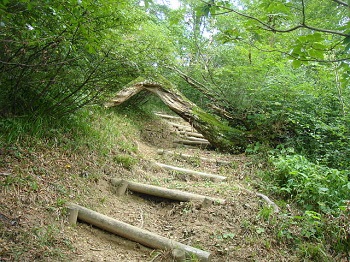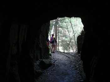 | 9:54 竜頭の滝から、急な階段を登って木馬トンネルへ。 |