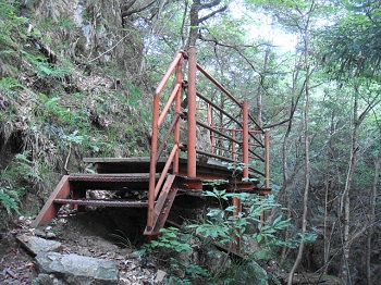 | 10:33 鉄製の橋を通って・・・変化に富んだ登山道。 |