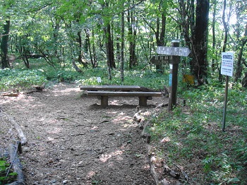 | 14:16 山頂にはテーブル付きのベンチが2つ有ります。 |