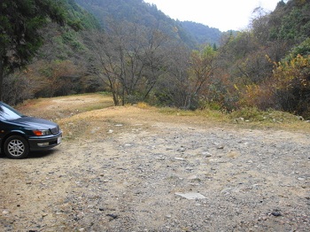 | 9:49 旧石州街道を辿る登山口前広場に駐車。他に車無し。 |