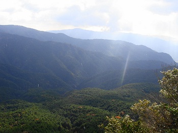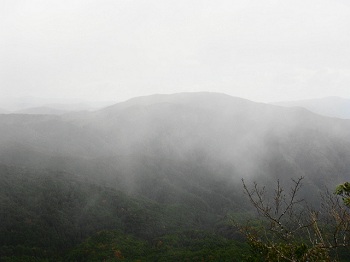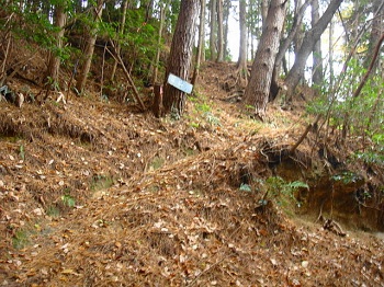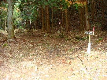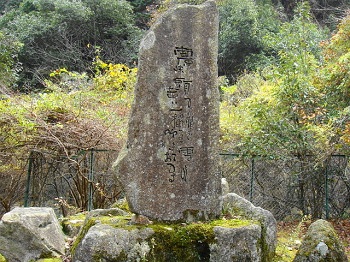 | 生憎の雨、天気を気にしつつ、南原峡県立自然公園の一角に聳える可部冠山(可部のマッターホルン)へ。私は晴れ男だと自負してんだけど・・・何で雨なんだろねぇ〜。南原峡の駐車場で30分程待機、そろそろ大丈夫かな。旧石州街道の登山口まで車で移動、登山口前の広場に駐車。石州街道を辿って、過去に思いを巡らせてと・・・。 |