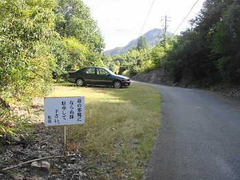 | 9:56 登山口から奥へ300m程の所にある駐車場 。 |