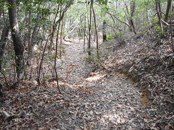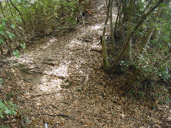 | 13:26 落ち葉の下山道。一気に下る。滑る〜滑る〜。 |