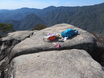 | 11:02 冠岳の山頂。 | 11:07 山頂の大岩。 | |