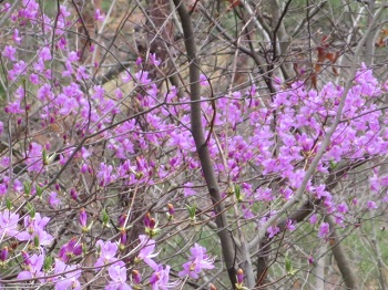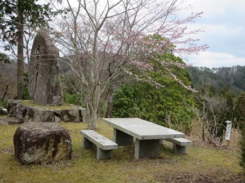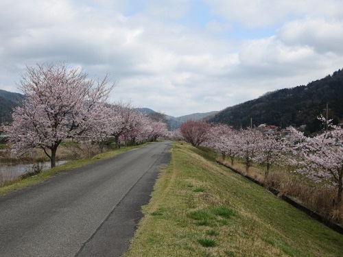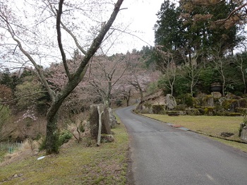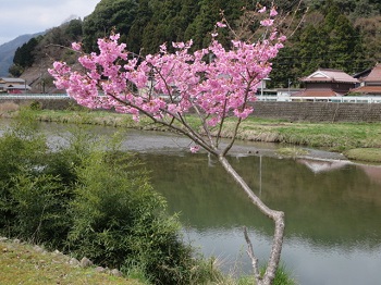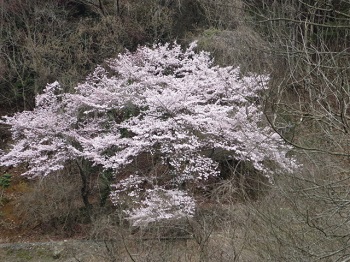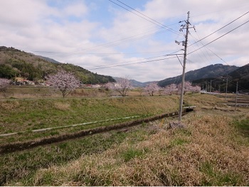 | 神ノ倉山へ花見と出かけました。宮島ICから志和ICまで山陽道経由し、江地会館の駐車場に車を停めさせていただきました。川沿いの遊歩道を北上し、時計回りで・・・。 |
