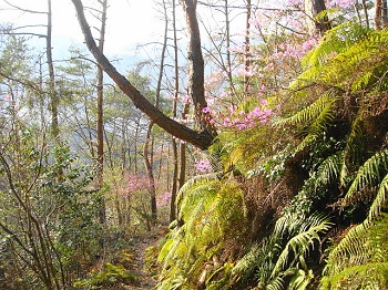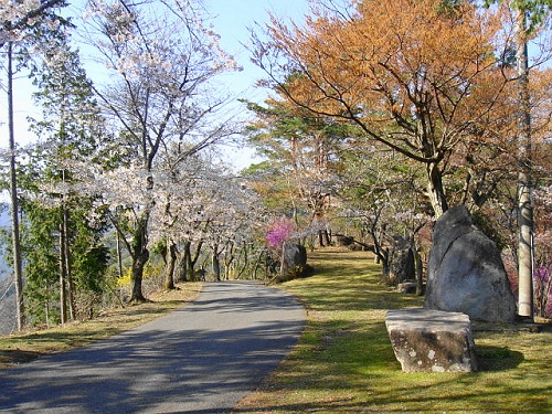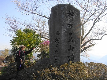 | 神ノ倉山へ名残の花見と出かけました。、廿日市から車で可部経由、広島市安佐北区の井原市まで、途中八木で一人ピックアップ。江地会館の駐車場に車を停めさせていただき、川沿いの遊歩道を北上、時計回りのルートで楽しみます。 |