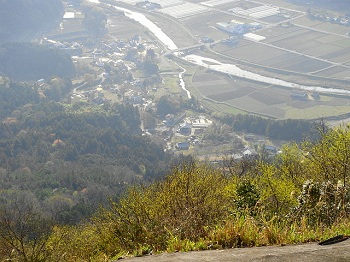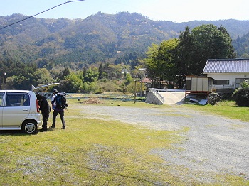 16:58 下方に江地会館の駐車場、我々の車が1台のみ駐車中。 |