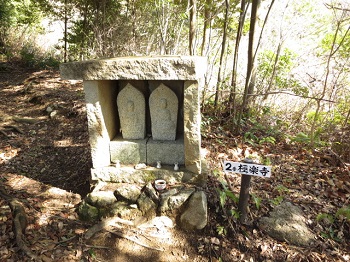| 快晴の中、周南市の観音岳ハイキングコースへお出掛け。コースには四国八十八ヵ所の石仏が鎮座していました。一番の霊山寺からスタートして山頂へ。山頂の空は、抜けるような青さでした。 |