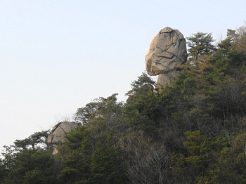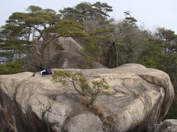 雨乞い信仰の岩、水神釜。上で踊ってみました。 |