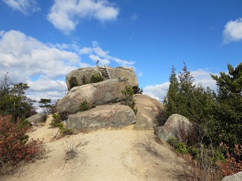 14:07 頂上直下の大岩に登って。