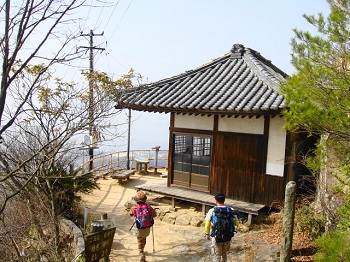 10:06 観音堂、見晴らしもいい。奥に鐘つき堂。 |