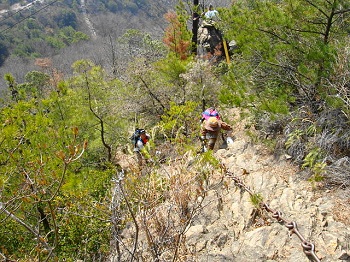 | 全員が花粉症で体調悪し。マスクを着けて登り始めたが、程無くして息苦しくなり、マスクを外す。何とこの山には杉の木が見当たらない。しかし、花粉症の症状は変わらず・・・。帰途、奥屋PAで美味しい水を汲んで帰る。女性隊員がにぎり天を買う、よく食べるなあ! |