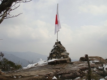 | 12:49 右田ヶ岳山頂。何故か日の丸。 |