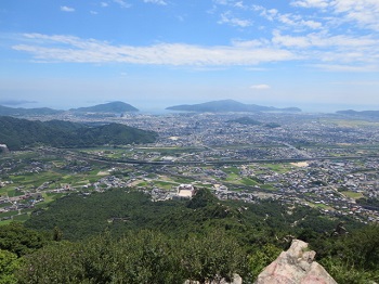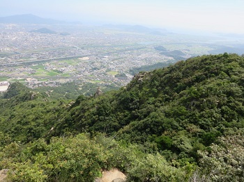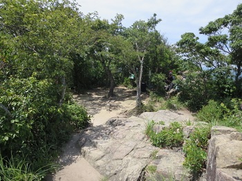| 台風一過、防府市の右田ヶ岳へ。登山者用の駐車場に着くころには、太陽が輝きだした。暑さにめげず、いざ出発。 |